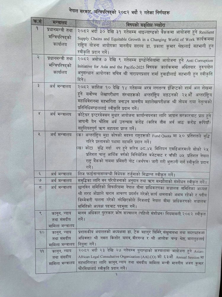 • यस्ता छन् मन्त्रिपरिषद् बैठकले गरेका २५ निर्णय (सूचीसहित)